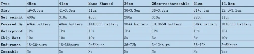 LED Chips:Q5(31cm);T6(36cm,41cm,49cm)